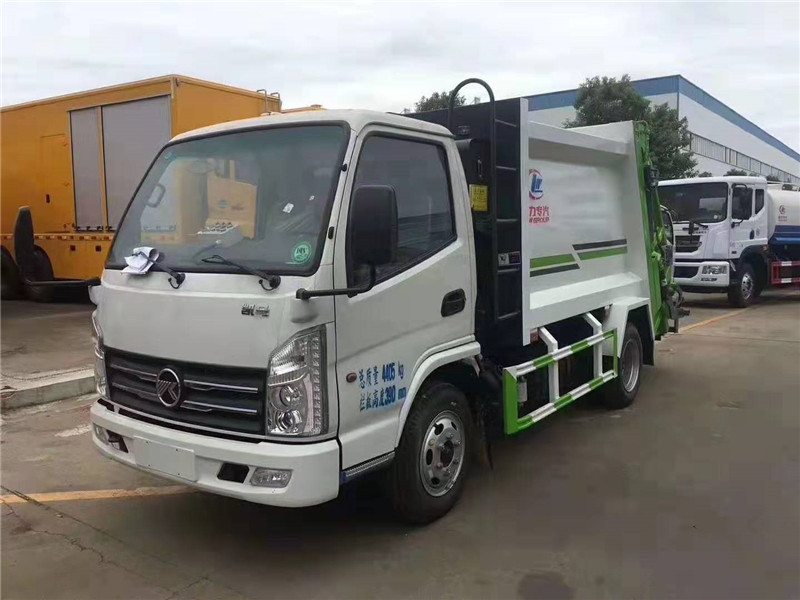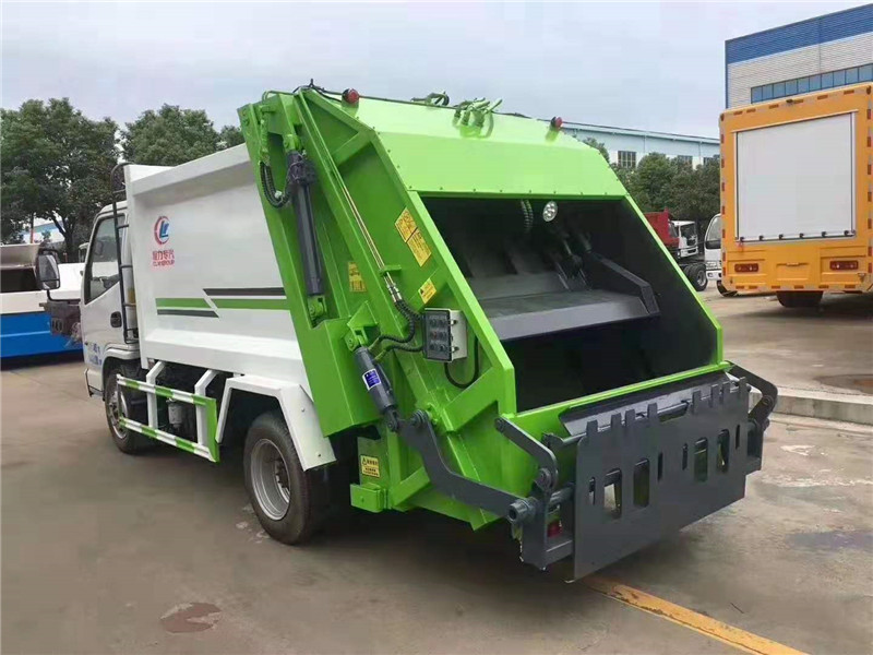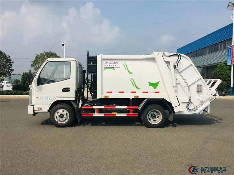 國六凱馬壓縮垃圾車與國五凱馬壓縮垃圾車區別:【藍牌4立方垃圾車,凱馬環衛垃圾車,4方后裝壓縮垃圾車配置說明】 ¤【底盤】:凱馬藍牌4立方壓縮垃圾車采用新款五十鈴級車身,軸距2800mm,云內102馬力國五發動機(D19TCIE1有環保),5檔變速箱,3.5噸后橋,6.50-16輪胎,氣剎,方向助力,ABS,原廠空調。 專用】:廂體材料為優質炭鋼,厚度為邊三底四,廂體容積為4立方米左右。由裝料機構、壓縮機構、卸料機構、油泵、油箱、控制閥等組成的液壓機構組成。裝料機構由支架、連桿機構、凸輪、掛鉤等組成,在油缸作用下,將垃圾桶內的垃圾自動翻轉倒入料斗內。 后翻轉機構選裝:1、掛塑料桶式翻轉機構;2、掛鐵桶式翻轉機構;3、擺臂式翻轉機構; 4、簸箕斗式翻轉機構。