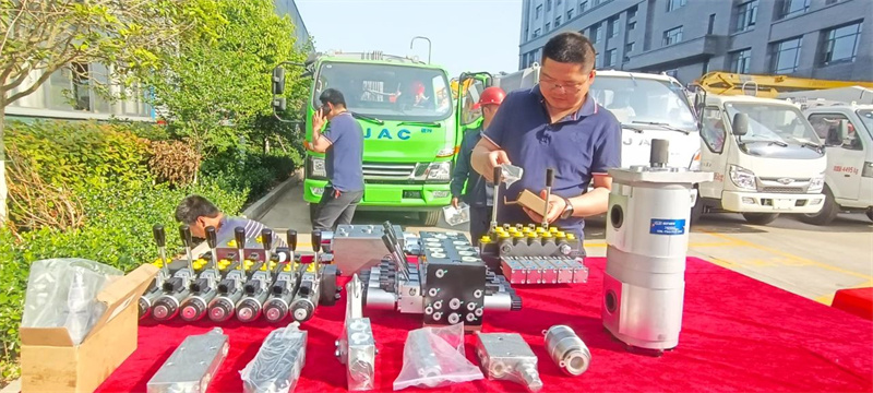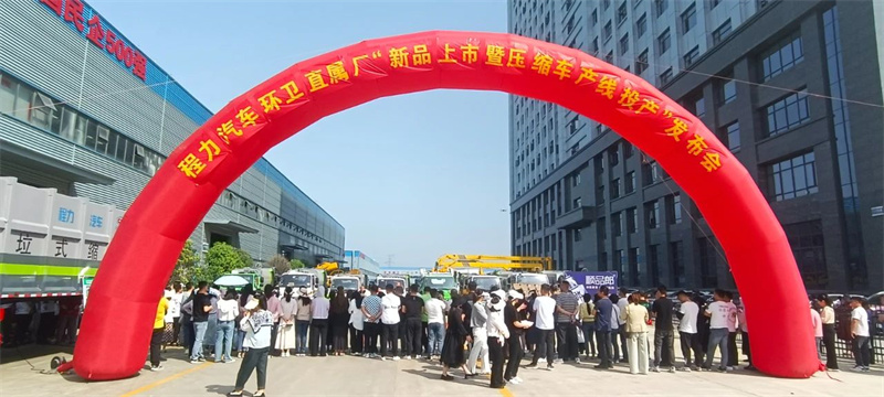 活動現場,集團公司董事長程阿羅、總經理朱武、程力汽車有限公司總經理程錦濤,共同為高品質壓縮垃圾車生產線投產剪彩。