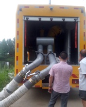 3、發(fā)電機組 發(fā)電機組功率選配,120KW,額定頻率50HZ,額電壓230/400V,康明斯發(fā)動機。調(diào)速方式:電子調(diào)速。啟動電瓶,電瓶總閘。 4、超輕型高速不銹鋼潛水泵 配4臺便攜式超輕型高速不銹鋼高頻率防腐蝕潛水泵,總流量可達1600立方每小時,單臺水泵功率為22KW,揚程為8M,單臺水泵配直徑為200MM消防式水管2根,每根長度為25米。 5、接地裝置 接地樁和接地電纜線,連接車箱內(nèi)專設的接地樁頭,連接方便,在機組工作時,接地線連接,保護作業(yè)安全。機電設備有嚴密的防漏電保護措施。在作業(yè)中,整車接地線,采用低壓接地線,配備可拆。卸式接地針,直徑不小于10mm。 6、控制系統(tǒng) 采用智能控制系統(tǒng),集中控制,中文界面,具有自動障礙保護功能,選用優(yōu)質(zhì)電器元件,性能穩(wěn)定,安全可靠。 7、抽水管 水泵進水口為一分兩個八寸,抽水管采用八寸美國進口透明水管,質(zhì)量輕,拿取方便,配3.5米長水管4根。接頭采用東方式快速接頭,使用方便,密封效果好;每個進水口配置鴨嘴式接頭,實現(xiàn)低水位抽吸作業(yè)。各進水口配90°彎頭。 8、排水管 水泵出水口一分四個5寸,每個出水口66米出水軟管(33m/卷,),軟管為快速接頭連接,操作方便,并在接頭處有防松保險裝置,安全可靠。水管直徑125CM水管材質(zhì)為雙面PVC,耐磨,耐壓10kg,快速接頭為凸輪接頭。 9、箱體 廂體外部鋼材為優(yōu)質(zhì)冷軋鋼板,內(nèi)襯優(yōu)質(zhì)冷軋鋼板折彎骨架,工藝先進,強度牢固。廂體為全密封結(jié)構,具備運輸、防雨、防腐、防火、防銹要求。車廂尾部安裝鋁合金卷簾門。發(fā)電機組進排風消聲處理,消聲器做降噪處理。車廂水泵兩側(cè)設開門,發(fā)電機進風口和排風口防雨百葉窗,工作門下,尾部設有隱藏式抽拉梯,與車廂底板框架連接。 10、外供電源 箱內(nèi)配備滿足5KW功率輸出、電壓380V插座1只,220V通用插座1只。 11、內(nèi)部照明 車廂內(nèi)飛利浦LED照明燈。在啟動發(fā)電機組時采用發(fā)電機組供電,發(fā)電機組停機時采用車輛直流電瓶電源供電,可實現(xiàn)便捷切換。 12、液壓支撐 車輛安裝四只液壓支撐腿,可在駐車狀態(tài)均分車輛靜壓,保護車輪及彈簧鋼板。選用進口優(yōu)質(zhì)意大利多路閥組,液壓支撐缸采用進口密封件,單缸靜載荷5噸,加裝雙向液壓鎖。 13、外部照明燈 車廂后頂部安裝升降照明燈,燈具功率150×2=300W;光源形式 LED燈(二聚光、二泛光);燈桿舉起高度1800mm水平旋角 360°;垂直旋角 330 |
