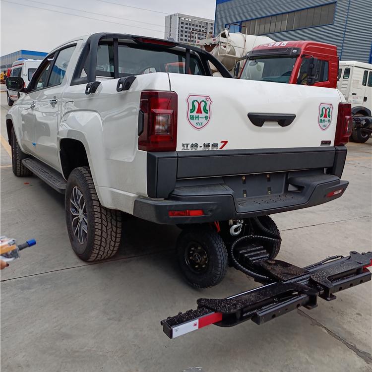 地庫救援皮卡清障車,此款車型有公告,可正常上戶。該車采用江鈴域虎皮卡底盤改裝,全自動夾緊裝置,因為車身短、高度低,特別適合地下車庫的車輛救援。