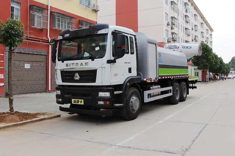 底盤型號:ZZ5256XXYN504GF1,重汽汕德卡后雙橋(C5H-M駕駛室),MC07.31-60(德國曼310馬力國六發(fā)動機(jī))發(fā)動機(jī),HW19710(重汽10檔)變速器+HW50法蘭式取力器;H153自調(diào)臂前軸(5噸鼓);153沖焊自調(diào)臂雙后橋(10噸鼓);雙層車架(8+5/280);ZF8198方向機(jī);前后標(biāo)準(zhǔn)版多片簧(11/10);中位杠(金屬);帶ABS(4S/4M);標(biāo)準(zhǔn)版排氣系統(tǒng);無氣候包。11.00R20鋼絲胎。 上裝配置:罐體容積:16立方,罐體為方圓形,罐體做防腐防銹處理,整車具有灑水車的一切功能。后工作平臺:龍馬80米噴霧機(jī)組,全自動360°旋轉(zhuǎn),配套動力:75KW柴油發(fā)電機(jī)組,風(fēng)機(jī)功率:18.5KW。帶操作。手自一體化。 湖北程力國六汕德卡后雙橋多功能抑塵車程力威牌CLW5250TDYZ6型多功能抑塵車CLW5251TDYZ6型多功能抑塵車圖片價格:
